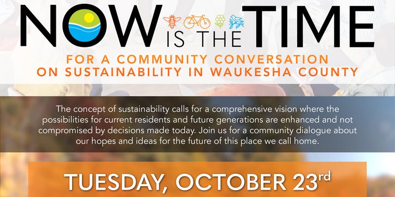 October 23, 2018, 5:30-8:30 p.m. — Now is the Time: A Community Conversation on Sustainability, Carroll University, 100 North East Avenue, Waukesha, WI 53186